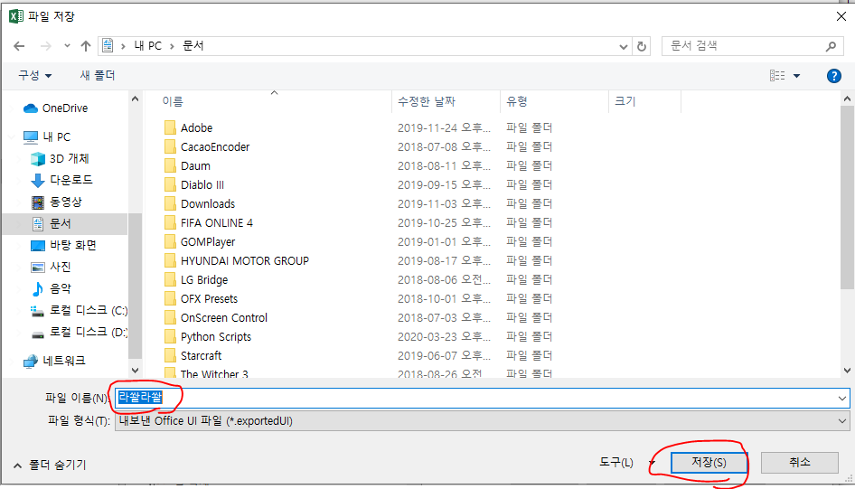 파일 이름을 정하고, 저장 버튼을 누릅니다.