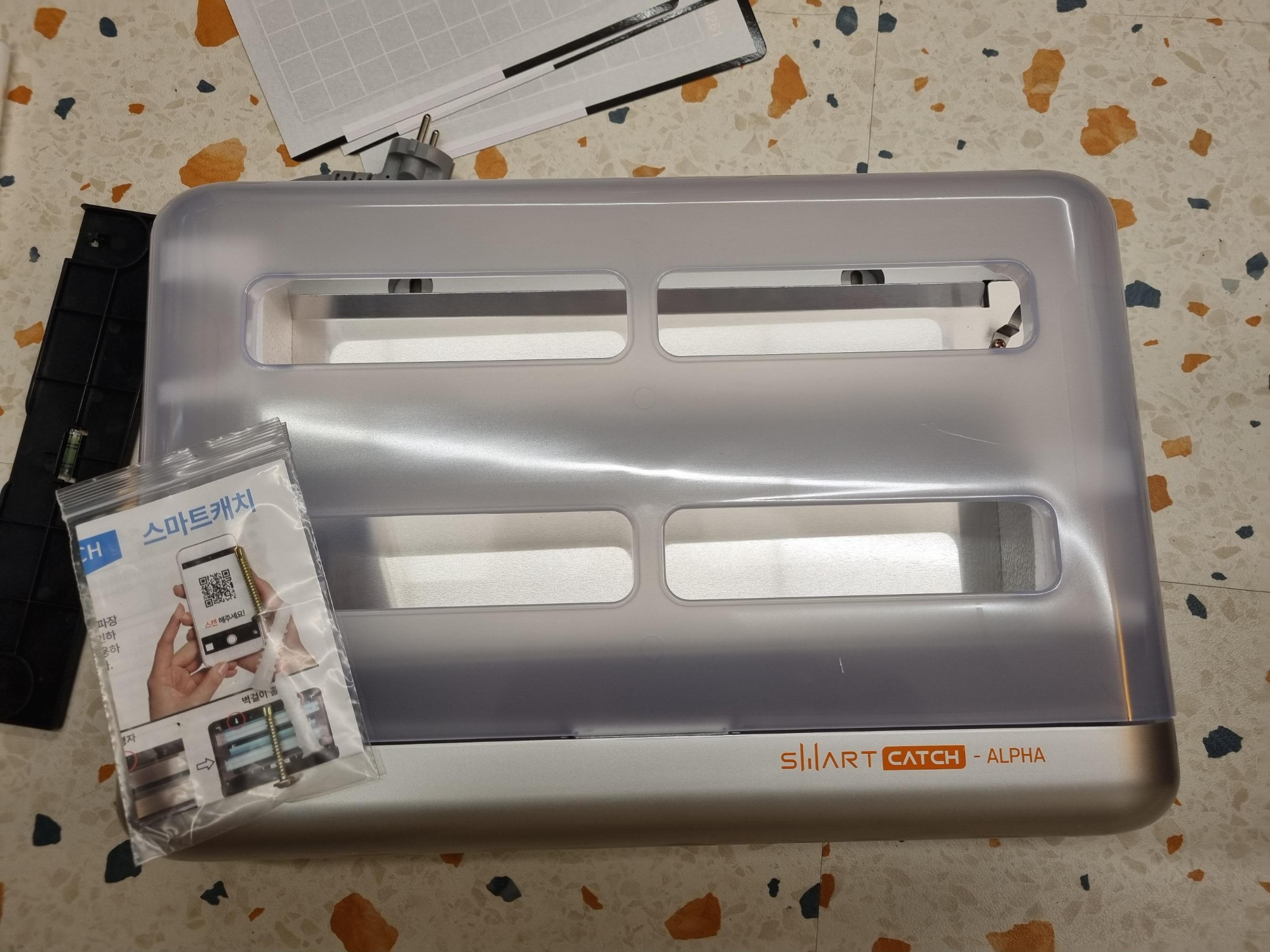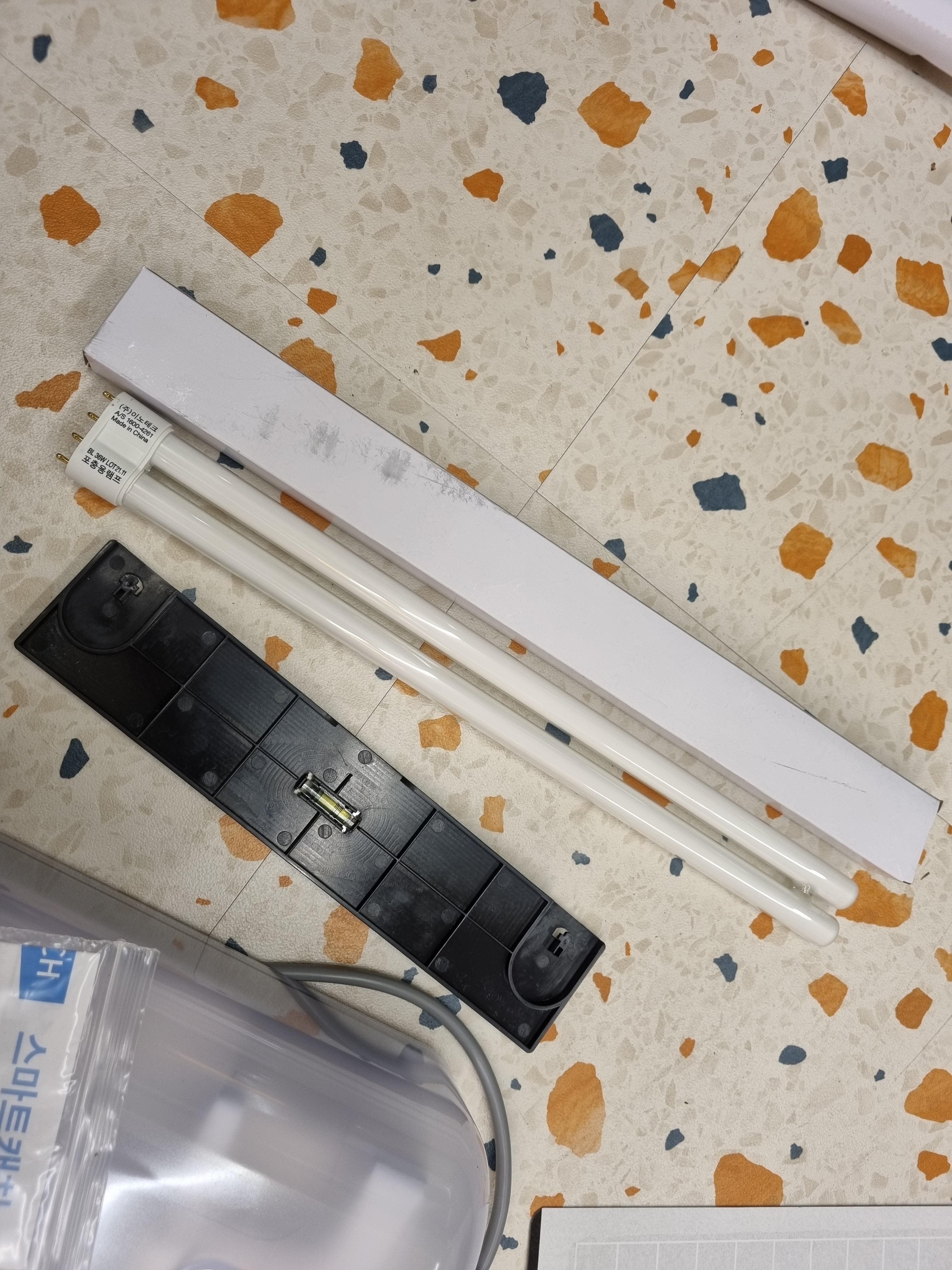 구성품은 본체, 끈끈이, 램프, 설명서, 브라켓 입니다.