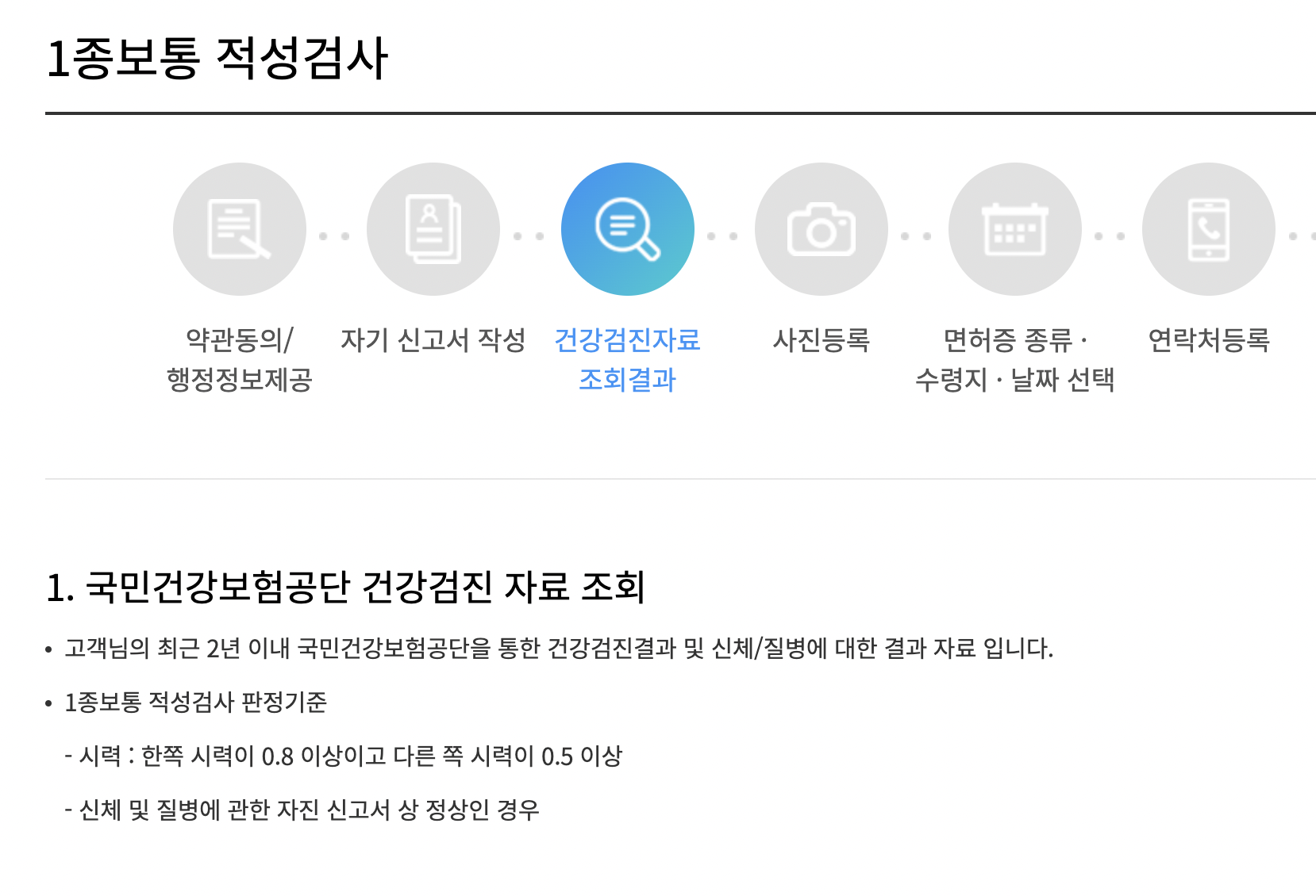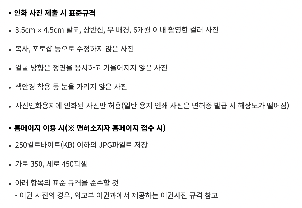 - 준비물 : 사진파일(여권규격), 1종 보통면허 및 2종면허(70세이상)의 경우 최근 2년 내 건강검진