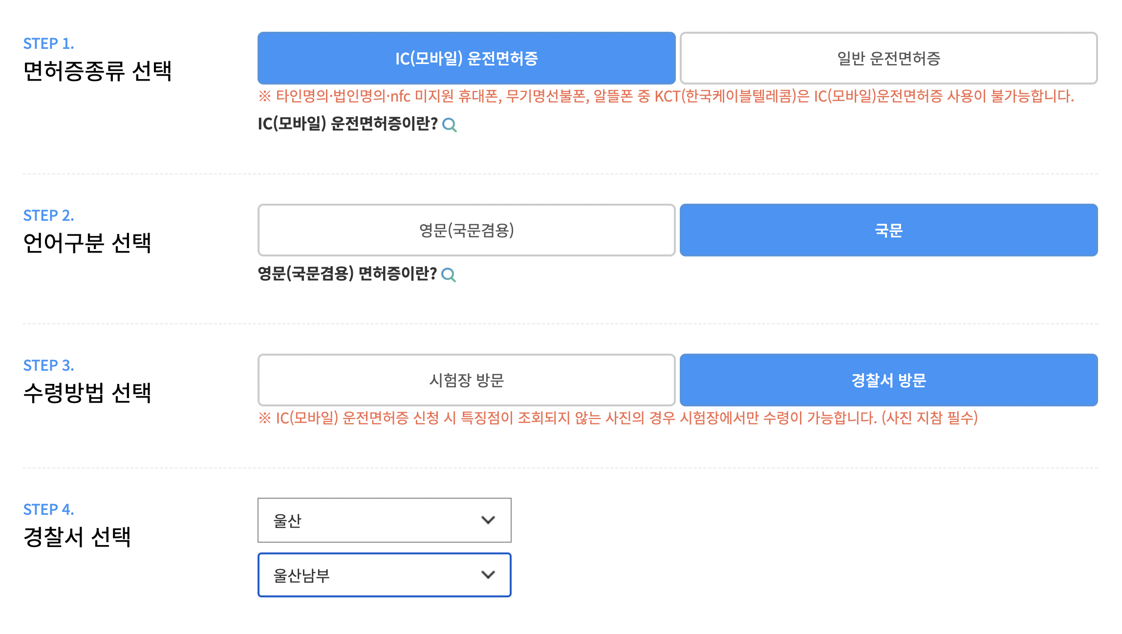 ※ 1종대형·특수면허는 시험장 또는 경찰서 방문 필수