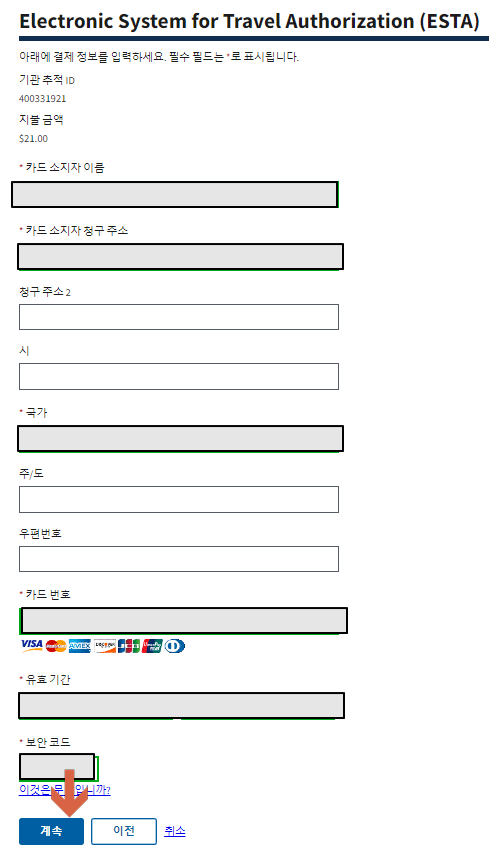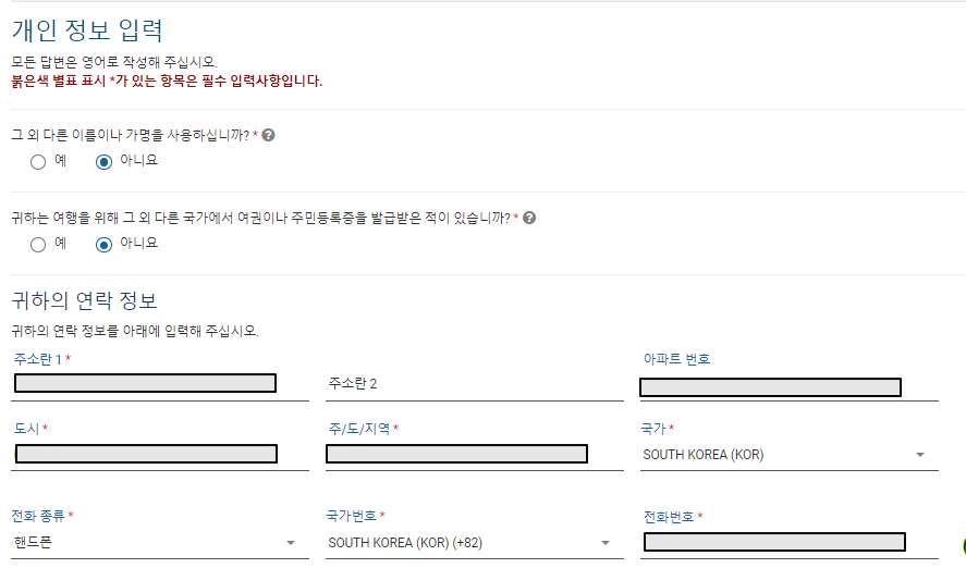 - 개인정보 추가 입력 : 영문주소를 변환해서 입력하고, 전화번호는 010~ 아니라, 10~ 으로 맨앞에 0을 빼고 입력