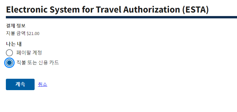 2. 사이트 접속 : '공식 ESTA 신청 웹사이트' 후 신청 진행