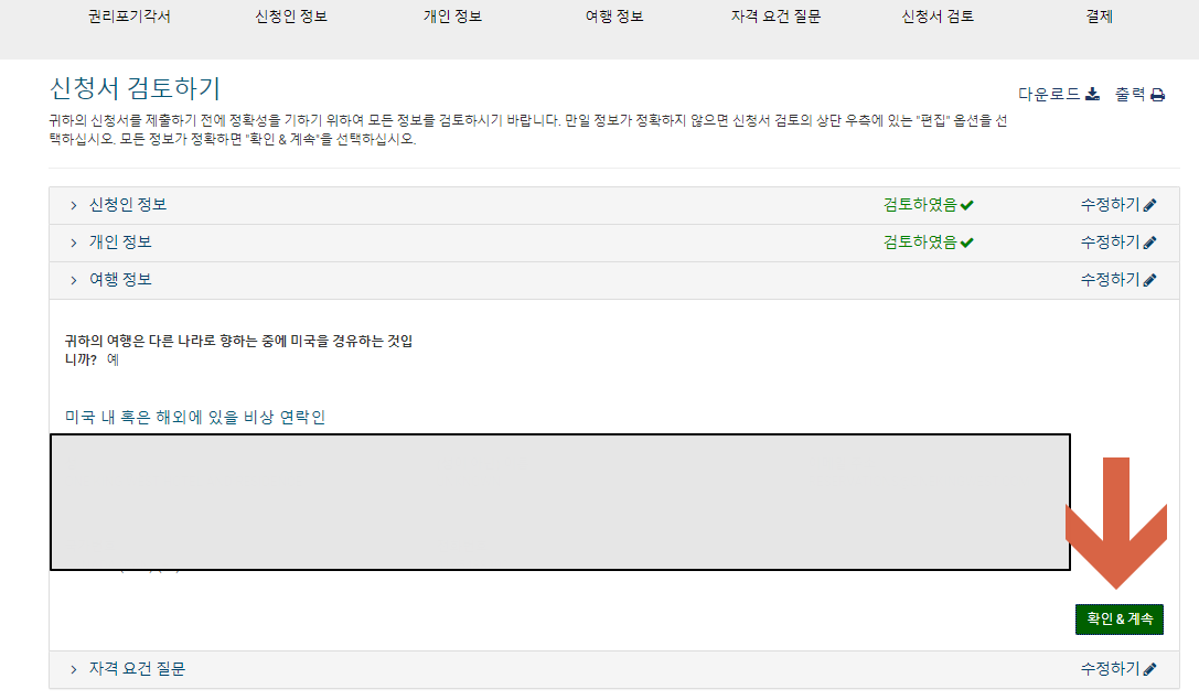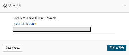 - 개인정보가 맞는지 한번 더 확인을 합니다. 꼭 정확한지 확인하고 확인&계속을 클릭합니다.