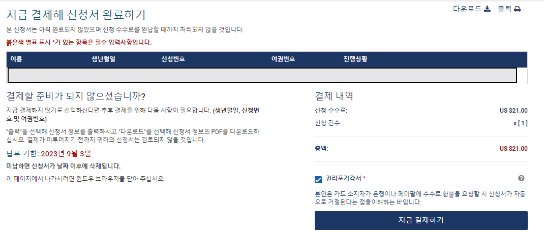 만일의 사태를 대비하여, 신청서를 출력하여 가지고 있으면 좋겠죠?