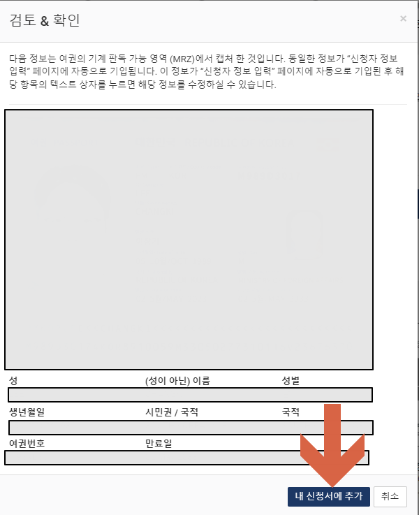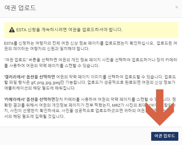 - 여권 사진 파일 준비(여권을 샘플과 같이 사진 찍어 파일 보관) & 업로드