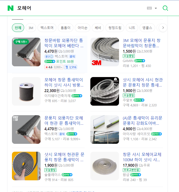 샷시에 잘보시면 털같은 게 달려있는데, 그게 수명이 10년 정도라서 오래된 샷시는 모헤어를 부착해주면은 외풍을 더욱 효과적으로 방어할 수 있습니다.