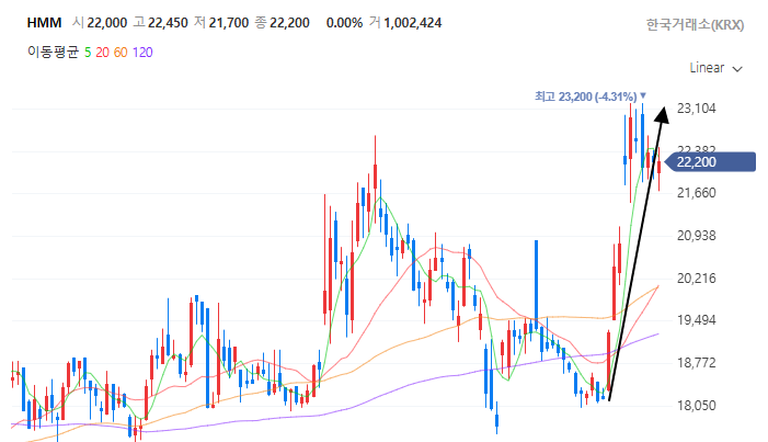 HMM 에 투자를 했다면? 우상향 계속 찍고 꽤 벌었을 것 같네요. 약 20% 수익 이 생겼습니다.