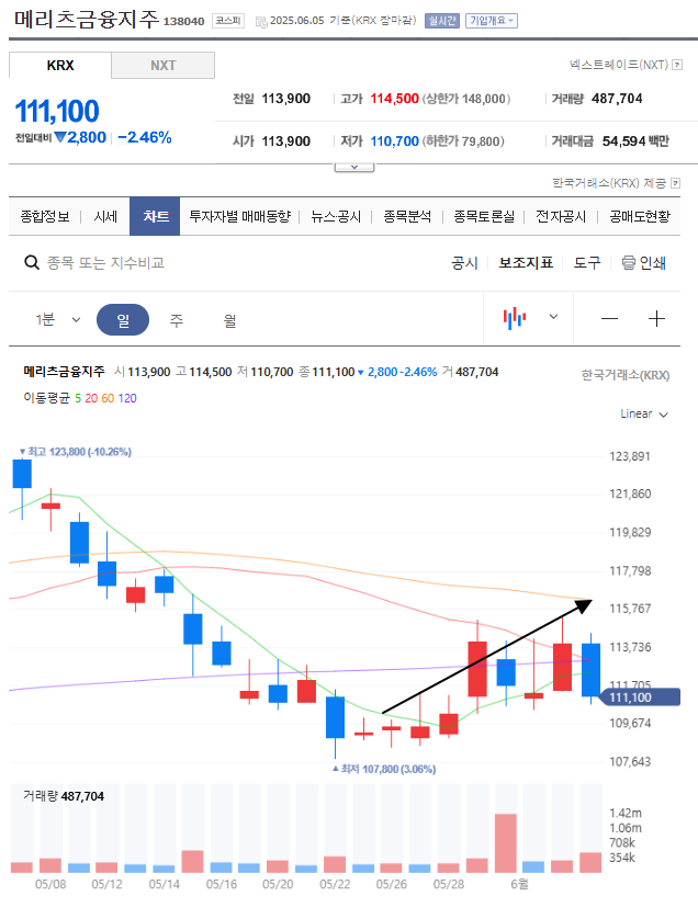 2주간 최고가는 115400 이었습니다. ( 5.6% 상승)