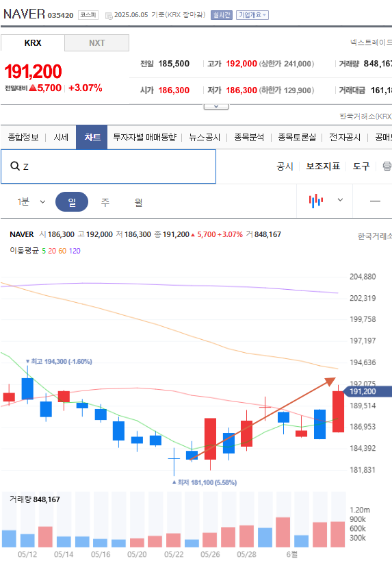 그럼 이주동안 결과는?최고점이 192,075 이네요 약 4.9% 상승입니다.